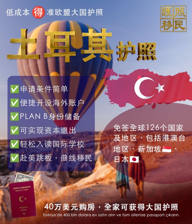 优点:有法案 大国护照 缺点:低价获得土耳其护照会被官方注销国籍 主要原因是很多移民公司用低价放大房产价格(价值5万美金放大40万美金常规操作)